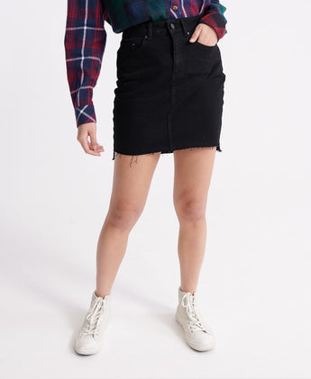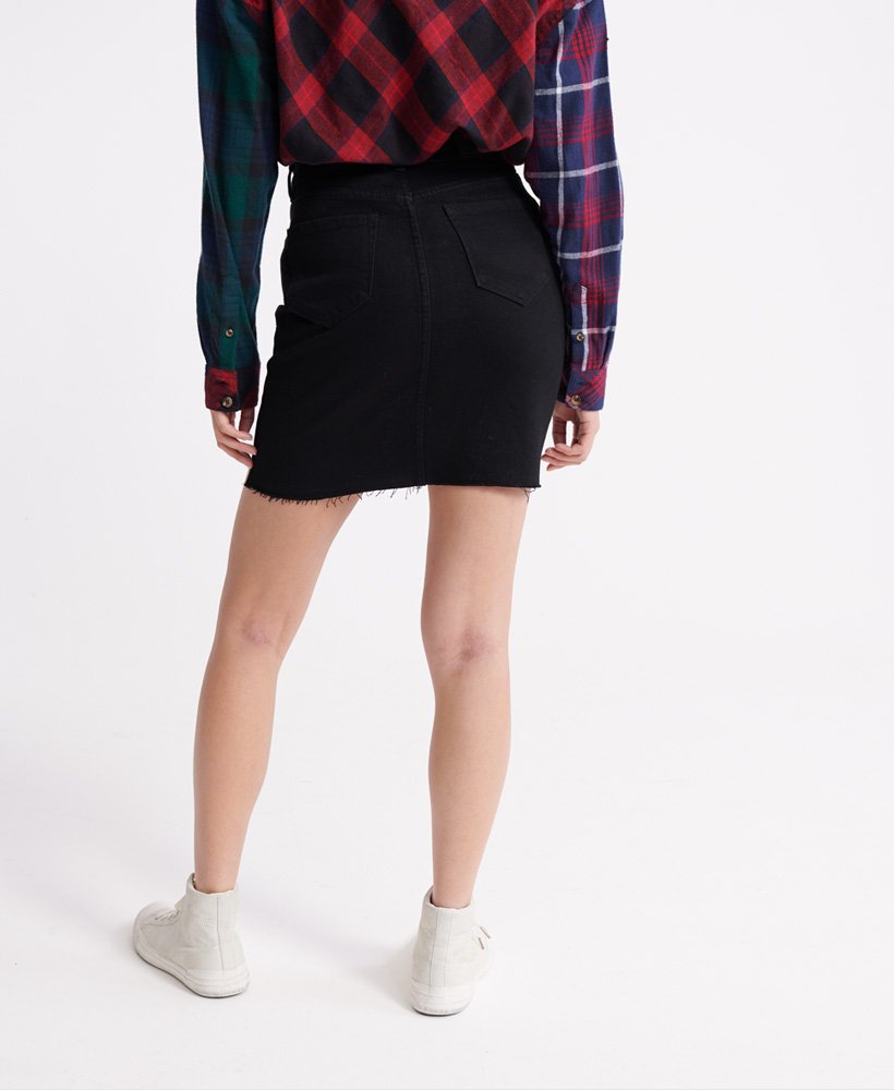 Fusta de blugi neagra de la SuperDry este alegerea ideala pentru o tinuta casual chic! Perfect mulata pe formele corpului, fusta de dama se inchide rapid cu ajutorul sistemului format din fermoar si nasture. Tivul nefinisat si cele 5 buzunare prinse in capse ajuta la crearea unui look lejer, dar cool, fara sa para ca ai petrecut ore in fata oglinzii!